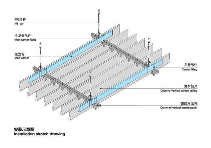滴水鋁掛片天花是一種敞透式設(shè)計(jì)的組合吊頂,它采用直插式簡(jiǎn)單快捷的安裝法,雙面見(jiàn)光,同時(shí)還可以雙面噴涂同一種顏色,配合燈光的設(shè)計(jì)效果,可拼裝出更加優(yōu)美的裝飾效果。