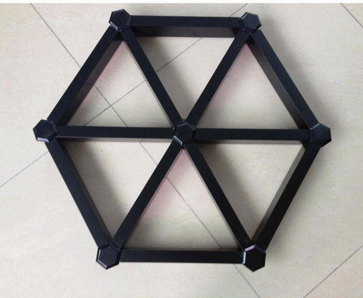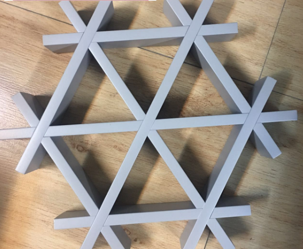 三角形鋁格柵天花吊頂組合起來是三角形的效果,而普通的鋁格柵天花是方格效果,鋁格柵天花吊頂,如果想要特別的裝飾效果,選擇三角格柵天花準(zhǔn)沒錯(cuò)。 板材三角格柵天花是一種沖壓成型加工得到的吊頂產(chǎn)品,因?yàn)殇X格柵產(chǎn)品的厚度一般偏薄,所以三角格柵天花的規(guī)格不會(huì)太大,同時(shí),板材三角格柵天花和普通的鋁格柵天花一樣,是卡扣組合系統(tǒng),安裝的時(shí)候通過主副骨卡扣組合起來再拼接滿足使用長度。