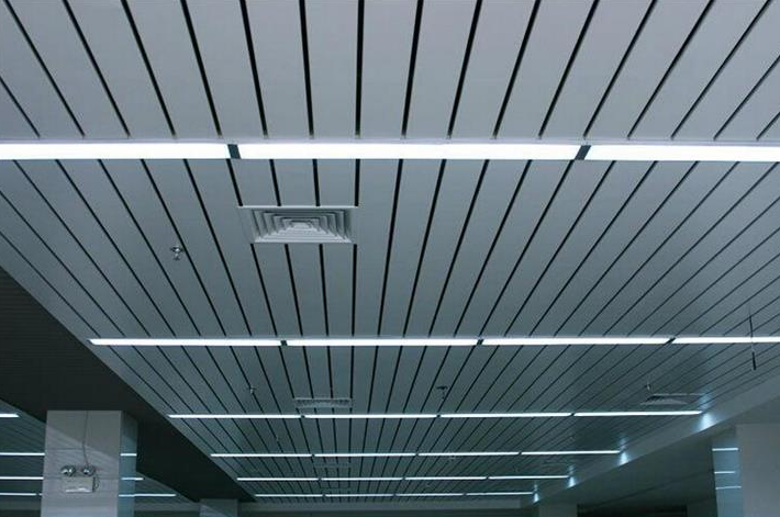 條形鋁條扣天花吊頂采用優(yōu)質(zhì)高強(qiáng)度鋁合金板材,經(jīng)過(guò)數(shù)控折彎和機(jī)拉技術(shù)成型,條形鋁條扣天花吊頂系統(tǒng)由裝飾面板、條形扣板專用副龍骨以及上層輕鋼主龍骨和相關(guān)配件共同構(gòu)成。