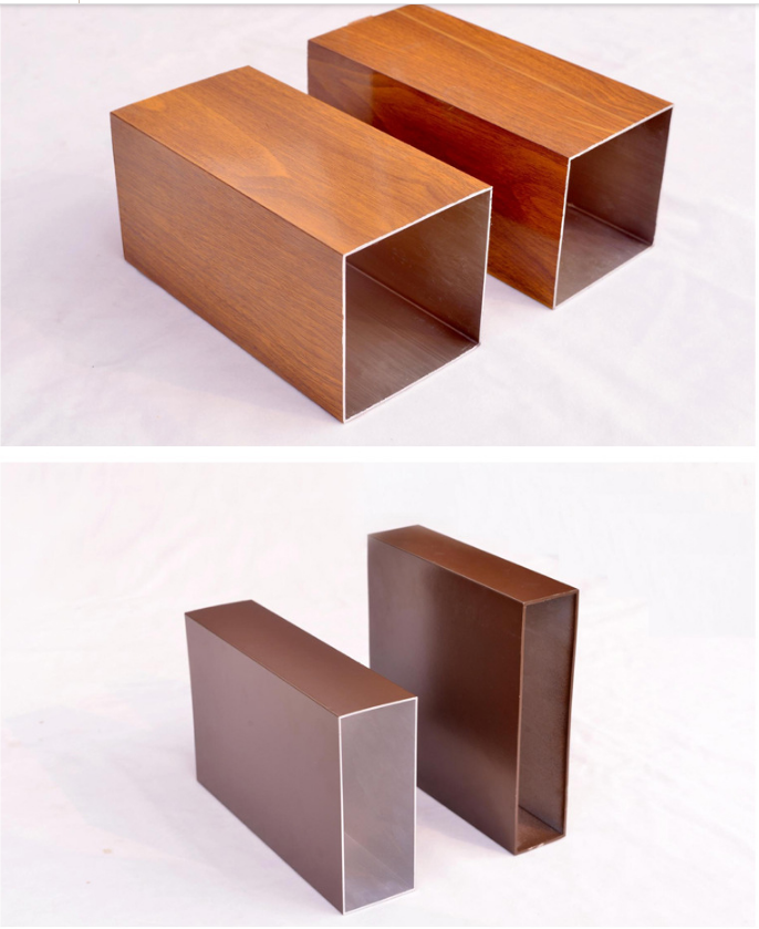 木紋鋁方管通過噴涂以及熱轉(zhuǎn)印或輥涂的工藝,在鋁方管表面涂敷木紋裝飾圖層。鋁方管表面的木紋具有清晰明了的纖絲紋路或粗獷的仿真木紋紋理,具有色彩豐富、自然的特點。