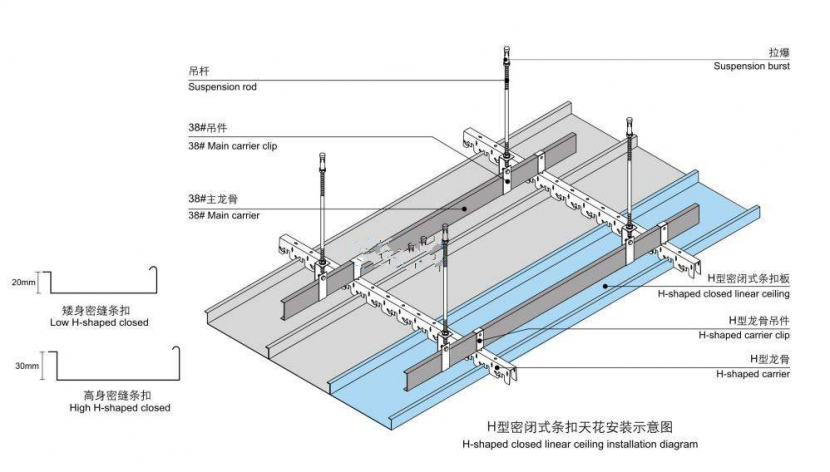 H型鋁條扣為縱向縫,細(xì)密且板面平直,線條簡(jiǎn)潔明快,富有變化,可進(jìn)行覆膜和粉末噴涂等表面處理。