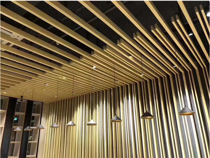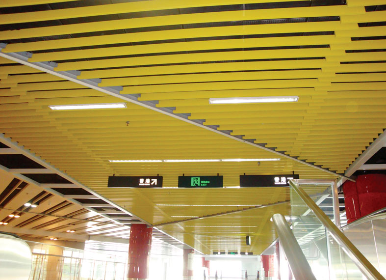 鋁合金鋁方通:多用于吊頂裝飾,適合大型公眾場合,如機場、高鐵站、商場、寫字樓等區(qū)域