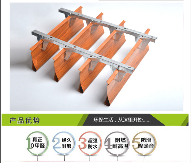滴水型材掛片(葉片)天花層次分明,美觀大方,線(xiàn)條簡(jiǎn)法,經(jīng)久耐用,通風(fēng)效果好,裝拆靈活,可根據(jù)用戶(hù)要求調(diào)整視覺(jué)高度,有利于空間的燈光效果以及消防噴淋,空調(diào)系列等設(shè)施的安裝。