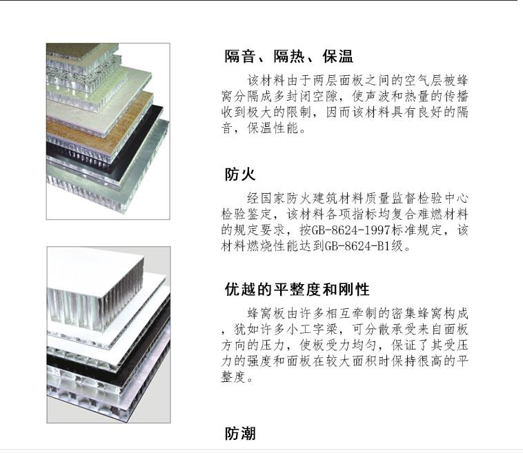 蜂窩鋁單板分量輕,剛性好,強(qiáng)度高,厚3.0毫米,每平方重8公斤,抗拉強(qiáng)度100 ~ 280牛頓/米。