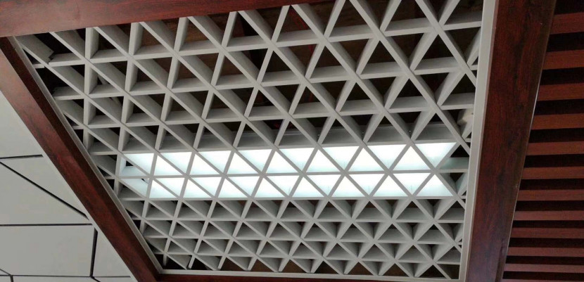 三角形鋁格柵天花吊頂組合起來是三角形的效果,而普通的鋁格柵天花是方格效果,格柵天花吊頂,如果想要特別的裝飾效果,那選擇三角格柵天花準(zhǔn)沒錯(cuò)。 板材三角格柵天花是一種沖壓成型加工得到的吊頂產(chǎn)品,因?yàn)楦駯女a(chǎn)品的厚度一般偏薄,所以三角格柵天花的規(guī)格不會(huì)太大,同時(shí),板材三角格柵天花和普通的鋁格柵天花一樣,是卡扣組合系統(tǒng),安裝的時(shí)候通過主副骨卡扣組合起來再拼接滿足使用長度。