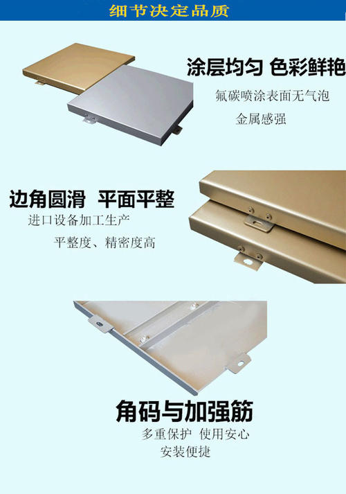 鋁單板適用于各種建筑內(nèi)外墻、大堂門面、柱飾、高架走廊、人行天橋、電梯包邊、陽(yáng)臺(tái)包裝、廣